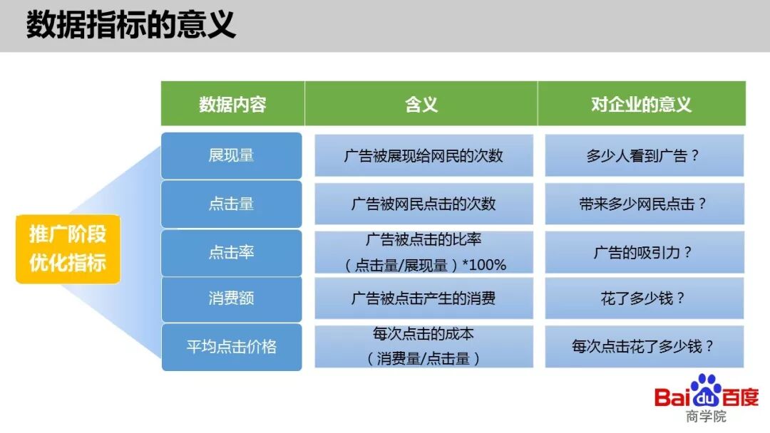 百度推广阶段优化指标